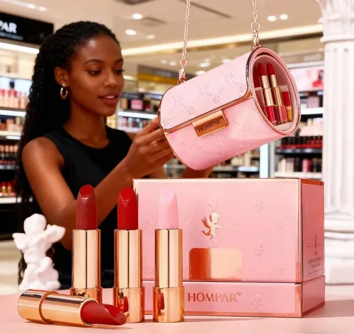 Comes with 4 stunning matte lipstick shades in a chic pink mini bag.