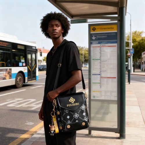 👨👩👧👦FOSIDIRI Black Patterned Crossbody Phone Bag with Cow Charm👇