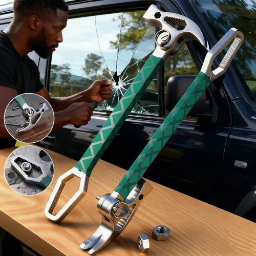 This appliance combines a claw hammer, adjustable wrench, and nail puller in one unit.