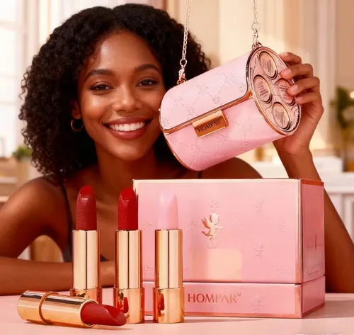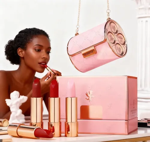 Comes with 4 stunning matte lipstick shades in a chic pink mini bag.